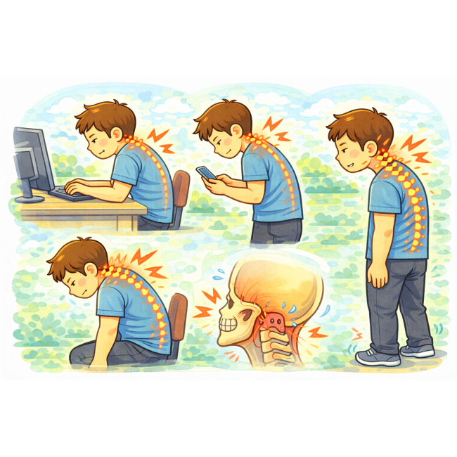 ✔ 頭部前傾
